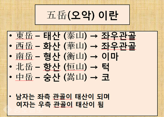 그리고 北岳(북악)인 턱의 형상으로 거주지의 운기와 가족 및 아랫사람의 운기도 살피는 것이니 대체로 이곳 모두 살집이 두터우면서 풍만하고 氣色(기색)도 明潤(명윤)하면 吉(길)한 작용을 하지만, 만약 좌우가 기울거나 함몰하면서 暗濁(암탁)하게 되면 매우 불길한 일이 발생하게 된다고 볼 수 있다.