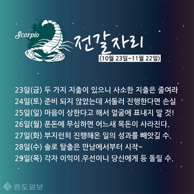 25일(일) 자잘한 지출이 많아지니 세심하게 신경 써라.