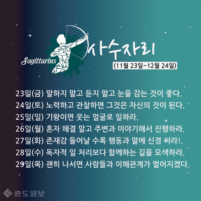 23일(금) 말하지 말고 듣지 말고 눈을 감는 것이 좋다.