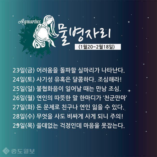 25일(일) 본인이 생각하지 못했던 일들을 조심하라.