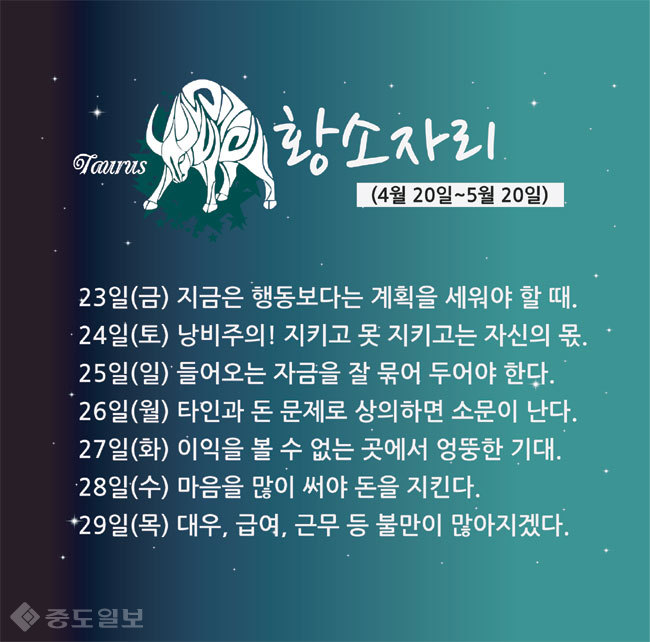 23일(금) 계획적이지 못한 지출에서 벗어나야 한다.