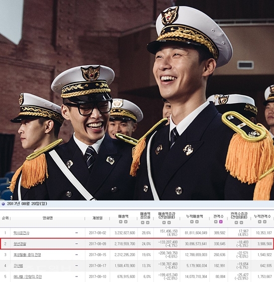 21일 오전 7시 기준 영화진흥위원회 통합전산망에 따르면 ‘청년경찰’(감독 김주환)은 개봉 2주차에 누적 관객 수 3,906,568명을 기록했다.