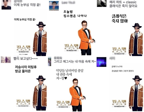 지난 16일 CGV페이스북을 통해서는 주인공 에그시(태런 에저튼)와 해리(콜린 퍼스)의 캐릭터 포스터에 어울리는 문구나 대사를 관객들이 직접 써보는 포스터 카피 이벤트가 진행됐다.