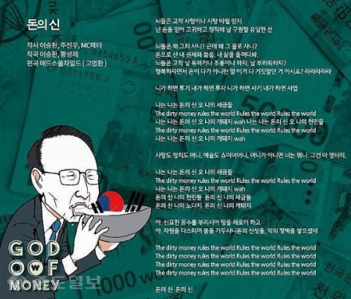 이승환의 ‘돈의신’은 주진우 시사인 기자가 발간한 ‘주진우의 이명박 추격기’에 대한 노래다. 특히 ‘돈의신’은 이승환 뿐만 아니라 MC메타가 참여해 완성도를 높였다.