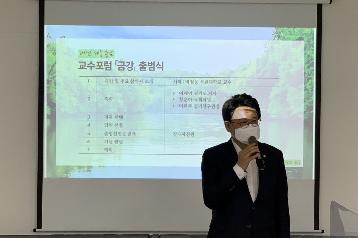 이재명 지사는 참여하지 않았지만 서면 환영사를 통해, "대한민국의 미래를 위해 지역 간 격차와 불균형을 해소하고 국가균형발전을 반드시 이뤄야 한다"며 "교수포럼 금강 출범이 새로운 대안을 마련하고 뜻깊은 계기가 되길 바란다"고 전했다.