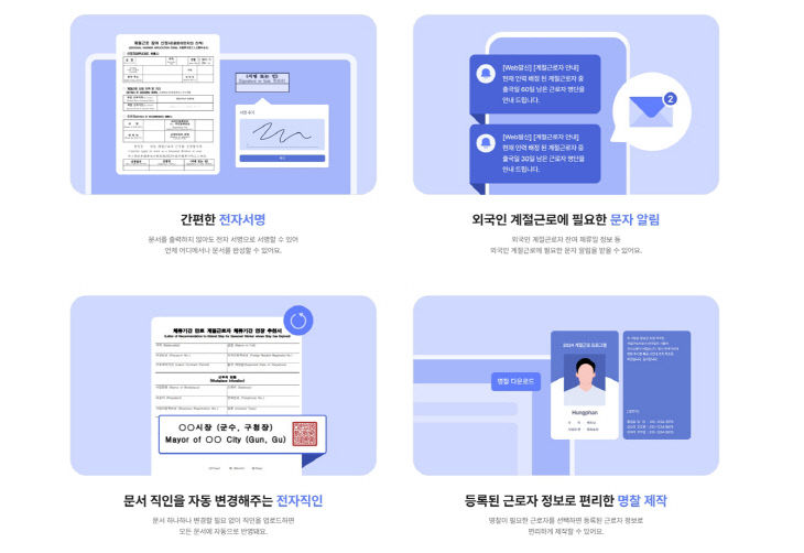 더욱이 외국인 계절근로자와 고용주 간의 애로사항이나 건의 사항 등을 실시간으로 파악함으로써 근로자 이탈을 예방할 수 있다.