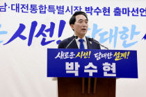 더불어민주당 박수현 국회의원(재선·충남 공주·부여·청양)이 6일 충남과 대전의 미래를 설계할 적임자를 내세우며 충남대전 통합특별시장 출마를 공식 선언했다. 박 의원은 이날 오전 충남도청 브리핑룸에서 기자회견을 열고, "충남과 대전이 감내해 온 구조적 소외를 끝내고 대한..