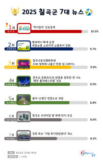 경북 칠곡군은 군민 1,147여명의 투표로 선정된 '2025년 칠곡군 7대 뉴스'를 발표했다. 화제가 됐던 17개 뉴스를 대상으로 실시한 설문조사 결과, '럭키칠곡 상표등록(10.5%)'이 1위로 선정됐다. '럭키칠곡'은 기존의 '호국평화의 도시' 이미지를 넘어 보다..