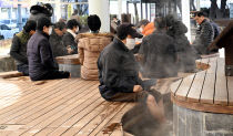 절기상 대설(大雪)을 사흘 앞두고 추운 날씨를 보인 4일 대전 유성구 족욕체험장을 찾은 시민들이 족욕을 하며 몸을 녹이고 있다. 이성희 기자 token77@