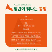 충주시 봉방동이 젊은 에너지로 들썩인다. 지역 청년들이 직접 기획한 축제가 골목 곳곳에서 펼쳐지며, 상권 활성화와 청년 네트워크 형성의 장이 마련된다. 시는 8일 봉방동 충주시시설관리공단 일원에서 2025 봉방동 청년사업자 연합회 축제 '청년이 빛나는 봉방(ALLDAY..