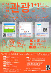 음성군은 12월 7일까지 음성군 전자관광지도를 활용한 스탬프 투어 경품 이벤트를 진행한다고 4일 밝혔다. 음성군 전자관광지도(eumseong.dadora.kr)는 웹관광지도로, 누구나 접속해 간편하게 음성군 관광 지도와 관광 관련 정보를 볼 수 있다. 스탬프 투어 이벤..