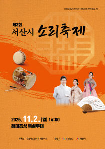 충남 서산의 대표 전통음악 축제인 '제3회 서산시 소리축제'가 오는 11월 2일 오후 2시, 해미읍성 특설무대에서 성대하게 열린다. 이번 축제는 (사)경서도창악회 서산지부(지부장 최정선)가 주최하고, 충청남도와 서산시가 후원한다. '소리의 모든 것! 전통의 소리와 순수..