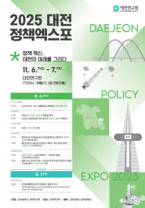 대전연구원은 6일부터 7일까지 이틀간 대전 유성구 전민동 소재 본원과 호텔ICC 2층 컨벤션홀에서 '2025 대전 정책엑스포'를 개최한다고 3일 밝혔다. 정책엑스포는 시민 중심 시정을 위해 지역전문가·시민과의 소통을 도모하여 새로운 정책을 발굴하고자 지난 2015년부터..