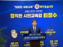 최정수 세종교육감 후보가 교육청 시설 개방과 학부모 돌봄공간 지원, 학부모 교육지원 센터 등을 설치하겠다고 약속했다. 최 후보는 16일 7번째 월요공약발표회를 열고 7가지 평생교육 정책공약을 발표했다. 최 후보는 "학교 운동장을 비롯한 교육청 관할 공간시설을 시민에게..