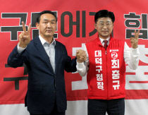 국민의힘 대전 대덕구청장 후보경선을 벌였던 최충규, 박희진 두 사람이 6·1 지방선거 승리를 위해 손을 맞잡았다. 두 사람의 원팀 결성은 경선에서 고배를 마신 박희진 전 시의원이 최충규 후보 선거캠프를 찾으면서 이뤄졌다. 박 전 시의원은 "내분 없는 원팀이 선거 승리의..