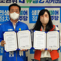 더불어민주당 조원휘 대전시의원 후보(유성3)는 전국여성노동조합 대전·충청지부와 비정규직 문제 해결에 앞장서기로 했다. 조 후보와 윤여옥 지부장은 최근 협약식을 맺고 ▲노동존중과 고용 불안 없는 학교 실현 ▲교육 공무직의 전문성 향상 ▲방학 중 비근무자 상시근무전환 ▲학..