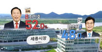 세종시장에 국민의힘 최민호 후보가 1시 35분 기준 개표가 56.04% 이뤄진 가운데 '당선 유력'으로 올라섰다. 국민의힘 최민호 후보는 4만 3397표를 받아 52.15%, 민주당 이춘희 후보가 3만 9809표를 받아 47.84%다. 현재 기준 두 후보의 차이는 35..