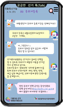 중도일보와 대전선거관리위원회가 2022년 1월 6일부터 6월 2일까지 공동으로 '궁금한 선거 톡(TALK)' 연재를 시작한다. 2022년 3·9 제20대 대통령선거와 6·1 제8회 전국동시 지방선거를 앞두고 보통·평등·직접·비밀투표 4대 선거요소를 지키기 위한 방법,..