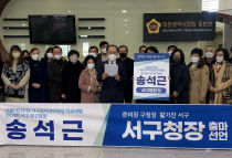 더불어민주당 송석근 대전 서구갑 지역위원장 직무대행이 10일 서구청장 공식 출마선언을 했다. 이날 송 대행은 대전시의회 로비에서 "구민에겐 겸손, 행정은 달인 송석근이 책임지겠습니다"라며 출마의 변을 남겼다. 자치분권 시대 도래를 강조하며 큰 틀에서 5가지 공약도 발표..