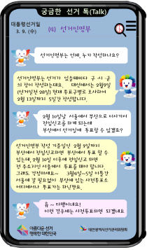 중도일보와 대전선거관리위원회가 2022년 1월 6일부터 6월 2일까지 공동으로 '궁금한 선거 톡(TALK)' 연재를 시작한다. 2022년 3·9 제20대 대통령선거와 6·1 제8회 전국동시 지방선거를 앞두고 보통·평등·직접·비밀투표 4대 선거요소를 지키기 위한 방법,..