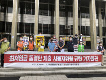 "최저임금 동결은 사실상 삭감이다." 정의당 대전시당이 최근 최저임금 논의에 대해 규탄 기자회견을 열었다. 30일 남가현 정의당 대전시당위원장은 전날 최저임금위원에 사용자측 위원들이 제출한 동결안에 대해 비판했다. 남가현 위원장은 "4% 경제 성장 전망과 1.8% 물가..