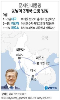 문재인 대통령이 다음 달 1~6일까지 5박 6일간 태국·미얀마·라오스 등 동남아 3개국 순방에 나선다. 태국은 공식방문, 미얀마·라오스는 국빈방문으로 문 대통령은 취임 후 아세안 10개국을 모두 방문을 마쳐 신남방정책 추진에 활력소가 될 전망이다. 아세안 국가는 브루..