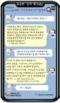 중도일보와 대전선거관리위원회가 2022년 1월 6일부터 6월 2일까지 공동으로 '궁금한 선거 톡(TALK)' 연재를 시작한다. 2022년 6·1 제8회 전국동시 지방선거를 앞두고 보통·평등·직접·비밀투표 4대 선거요소를 지키기 위한 방법, 사전·본투표 등에서 유의해야..