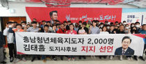 충남청년체육지도자 2000명 대표자들은 24일 국민의힘 김태흠 충남도지사 후보에 대한 지지를 선언했다. 이들은 이날 김태흠의 힘쎈캠프를 찾고 "김태흠 후보는 충남 체육을 살릴 적임자다. 적극 지지한다"며 이같이 말했다. 지지선언에 참가한 초중강사 체육인은 모두 한마음으..