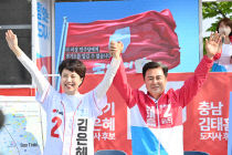 국민의힘 김태흠 충남도지사 후보가 국회의원 시절 지역구였던 서천을 찾고 지지를 호소했다. 김 후보는 20일 오후 보궐선거가 열리는 장동혁 보령·서천 국회의원 후보 서천군 출정식에 참석해 "고향 분들이 늘 사랑을 주셨는데, 임기를 못 채우고 마무리해 마음 한 켠 늘 죄송..