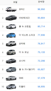 포터와 아반떼 판매율 1위 놓고 ‘경쟁’