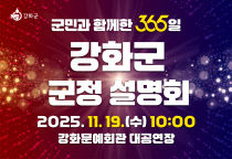 강화군은 오는 19일 오전 10시 강화문예회관에서 '군민과 함께한 365일, 강화군 군정 설명회'를 개최한다. 당초 10월 17일 개최 예정이었으나, 이례적 가을장마로 농작물 수확이 지연됨에 따라 일정을 11월 19일로 조정했다. 이번 설명회는 민선 8기 제10대 강화..
