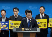 김영록 전남도지사가 3일 브리핑룸에서 12·3 불법 비상계엄 저지 1년 담화문을 발표했다. 김영록 지사는 "절체절명의 벼랑 끝에 섰던 대한민국을 지켜낸 위대한 도민의 승리를 가슴 깊이 새긴다. 그날의 승리 위에 전라남도와 국민주권정부, 그리고 진짜 대한민국이 우뚝 서..