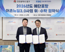 인천시 중구가 한국어촌어항공단과 손잡고 '예단포항 어촌뉴딜3.0 사업'을 본격적으로 추진한다. 이번 사업은 지난해 11월 예단포항이 해양수산부의 '2026년도 어촌뉴딜3.0 사업(어촌회복형)' 대상지로 선정된 데 따른 것이다. 5일 오전 중구 제2청 구청장실에서 열린..