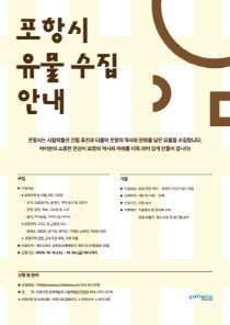 경북 포항시는 포항의 역사와 문화를 담은 유물 수집을 본격 추진한다. 2027년 11월 개관할 포항시립박물관에 전시·보관하기 위해서다. 유물 수집은 구입과 기증 두 가지 방식으로 진행된다. 유물 구입은 10월 15일부터 24일까지 이메일 또는 등기우편을 통해 매도 신청..