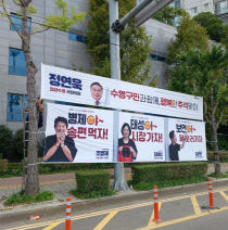 추석 명절을 앞두고 부산 수영구 거리에 걸린 이색 현수막이 지역민들의 관심을 끌었다. 정연욱 국회의원(수영구)은 최근 수영구 일대에 "수영구민과 함께, 행복한 추석맞이"라는 문구와 함께 현수막을 내걸었다. 이번 현수막은 조병제, 김보언, 김태성 수영구 의원들도 함께 참..