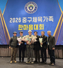 대전중구파크골프협회(회장 오노균)가 26일 오후 중구체육회(회장 박희정)가 주최한 '2026 중구체육가족 한마음대회'에서 종목단체 우수상을 수상했다. 이날 행사에는 김제선 중구청장, 오은규 중구의회의장, 이장우 대전시장, 설동우 대전시교육감, 이승찬 대전시체육회장, 박..