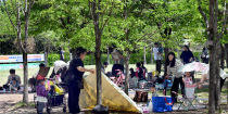 전국동시 지방선거를 앞둔 23일 대전 유성구 유림공원에서 대전시선관위 직원들이 1인 7표제와 투표참여 캠페인을 벌이고 있다. 이성희 기자