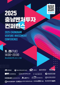 충남창조경제혁신센터(김재준 대표이사 직무대행)는 25일 충남창업마루 나비 8층 대강당에서 '2025 충남벤처투자 콘퍼런스'를 개최한다. 이번 콘퍼런스는 충남 지역의 우수 스타트업 발굴과 투자 활성화를 위한 대표 행사로, 민·관·산·학 협력 체계를 강화하고 도내 창업 생..