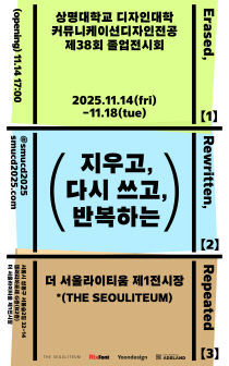 상명대학교(총장 김종희) 디자인대학 커뮤니케이션디자인전공은 18일까지 더 서울 라이티움 제1전시장에서 제38회 졸업작품전 'Erased, Rewritten, Repeated'을 개최한다. 전시주제인 'Erased, Rewritten, Repeated(지우고, 다시 쓰고..