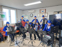 공주시 정안면 지역사회보장협의체(공동위원장 박부화, 김진선)는 최근 장원2리 경로당에서 '백제하모니'와 연계한 아코디언 재능기부 행사를 진행했다고 9일 밝혔다. '백제하모니'는 공주와 세종, 부여 지역의 퇴직자들로 구성된 음악 동호회로, 이날 경로당을 찾아 어르신들에게..