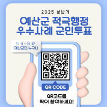 예산군은 2025년 상반기 적극행정 우수공무원 선발을 위해 11일부터 17일까지 7일간 온라인 군민투표를 실시한다고 밝혔다. 군은 적극적인 업무 추진으로 공공의 이익 증진에 기여하고 공직사회 내 적극행정 문화 확산을 위해 매년 상·하반기 적극행정 우수공무원을 선발하고..