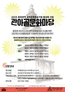 충주문화관광재단과 충주시는 정부의 지방시대 핵심 비전인 '5극 3특' 전략에 발맞춰 '충청권 국악문화향유거점 활성화 사업' 운영자를 21일까지 공개 모집한다고 8일 밝혔다. 이번 사업은 충주시가 '대한민국 문화도시' 예비사업 단계부터 추진해 온 '충청투게더'의 성과를..