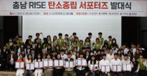 상명대학교 충남RISE(단장 왕한호) 탄소중립 서포터즈가 최근 나사렛대학교 패치홀에서 열린 발대식에서 호서대, 상명대, 나사렛대, 선문대, 충남도립대 등 충남 지역 5개 대학 서포터즈와 함께 기후 위기 대응을 위한 청년들의 역할을 논의하고 탄소중립 실천 아이디어를 공유..