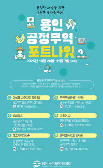 용인특례시(시장 이상일)와 용인공정무역 협의회는 24일부터 11월 7일까지 '용인시 공정무역 포트나잇' 축제를 개최한다. 공정무역 포트나잇은 1997년 영국에서 시작된 공정무역 캠페인으로 지역사회의 다양한 공동체가 함께 공정무역의 가치를 실천한 행사다. 행사는 24일..