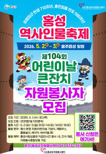 홍성군이 5월 대규모 지역 축제 운영을 위한 자원봉사 인력 모집에 나섰다. (사)홍성군자원봉사센터는 5월 2일부터 3일까지 이틀간 홍주읍성 일원에서 열리는 '2026 홍성군역사인물축제 × 어린이날 큰 잔치'의 원활한 운영을 위해 자원봉사자 200명을 모집한다고 2일 밝..