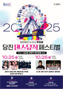 당진시(시장 오성환)는 10월 25일과 26일 이틀간 삽교호관광지 바다공원 일원에서 '2025년 당진 댄스&뮤직 페스티벌(DDMF)'을 개최하고 '춤과 음악으로 하나 되는 당진, 당진에선 누구나 주인공'이라는 주제로 화려한 가을 축제의 장을 펼친다고 21일 밝혔다. 시..