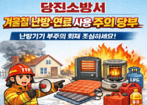 당진소방서(서장 이상권)는 12월 19일 겨울철을 맞아 난방기기와 연료 사용이 늘어나면서 화재 위험이 높아짐에 따라 시민들을 대상으로 난방·연료 사용 부주의에 대한 각별한 주의를 당부한다고 밝혔다. 소방서에 따르면 최근 겨울철 화재는 전기히터, 전기장판, 석유난로 등..