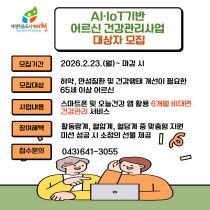 제천시가 인공지능과 사물인터넷 기술을 접목한 비대면 건강 관리 서비스로 어르신 만성질환 관리에 나선다. 제천시보건소는 65세 이상 어르신을 대상으로 하는 'AI·IoT 기반 어르신 건강 관리 사업' 참여자를 오는 23일부터 모집한다고 밝혔다. 이번 사업은 혈압·혈당 등..