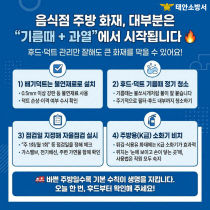 태안소방서(서장 류진원)는 겨울철 화재안전대책의 일환으로 음식점 주방 화재 예방을 위한 안전수칙 홍보에 나섰다. 소방청 국가화재정보시스템 통계에 따르면 2025년 음식점에서 발생한 화재는 2482건으로 전체 화재의 약 6.5%를 차지했으며, 부주의 화재 중 약 13.8..