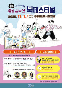 증평군이 관내 책 읽는 분위기를 조성하고 배움 문화 확산을 위해 11월 1일 군립도서관 일원에서 제10회 김득신 북 페스티벌을 연다. 2016년부터 열고 있는 북페스티벌은 2024년부터는 증평온마을배움터 마을학교축제, 평생학습축제와 연합한 배움누리 3행 축제로 진행되며..